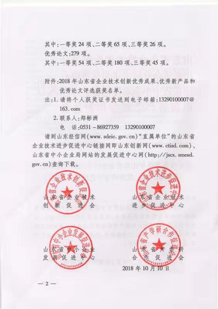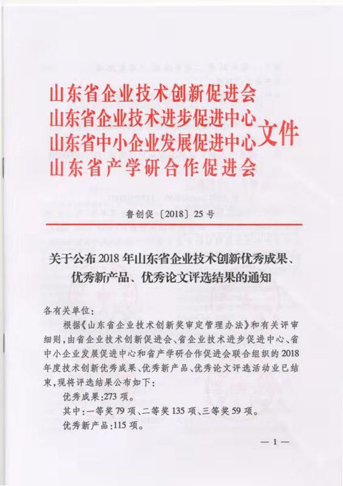 山东省技术创新优秀成果、优秀新产品、